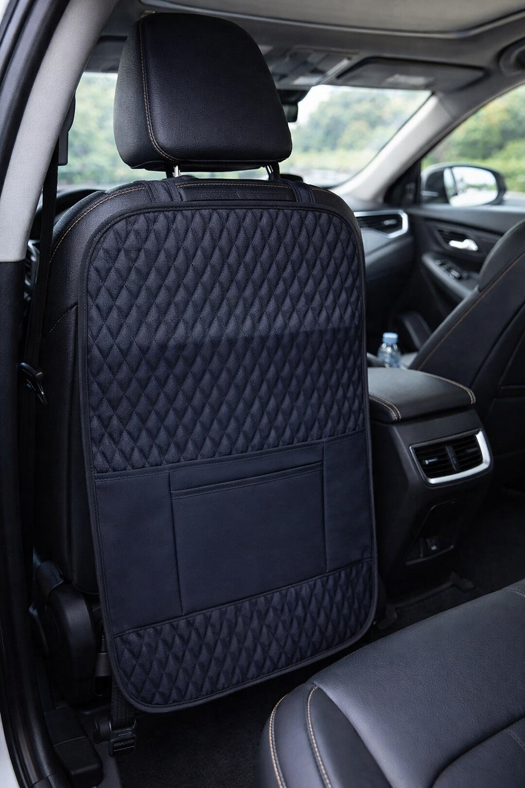 Su diseño acolchado y elegante no solo protege el respaldo del asiento, sino que también añade un toque moderno al interior del vehículo.