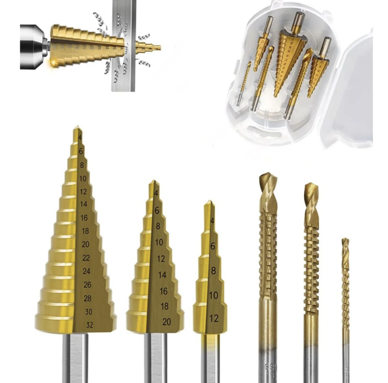 👉 Ejemplo: una sola broca puede perforar 4mm, 6mm, 8mm, 10mm… sin cambiar herramienta.