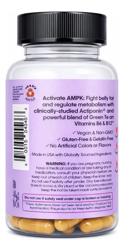AUMENTA EL METABOLISMO: Extracto de Té Verde (std. y polifenoles clínicamente estudiados del 98%) y el Gynostemma (Jiaogulan) activan el metabolismo, mientras que las formas activas de la vitamina B6 y el metil B12 apoyan el metabolismo energético. *