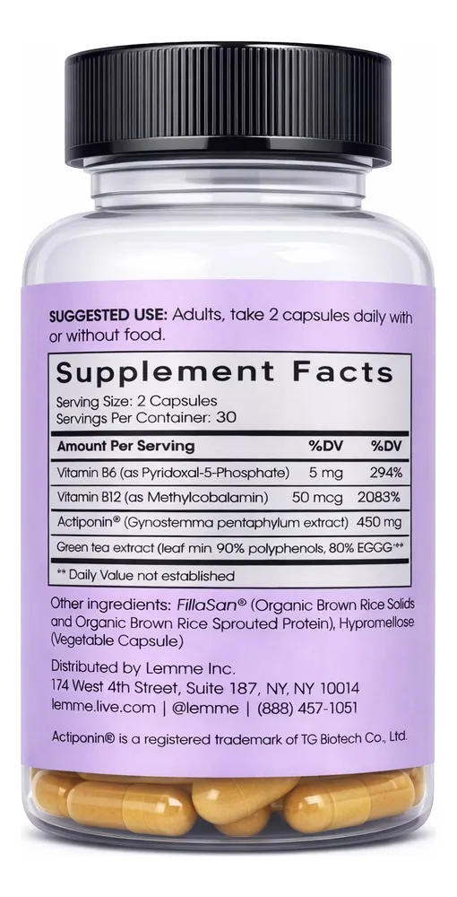 Apoya el manejo saludable del peso: Lemme Curb promueve la regulación metabólica, reduce los antojos y ayuda a apoyar la pérdida de peso a través de su capacidad para impactar positivamente la composición corporal, en combinación con dieta y ejercicio. *