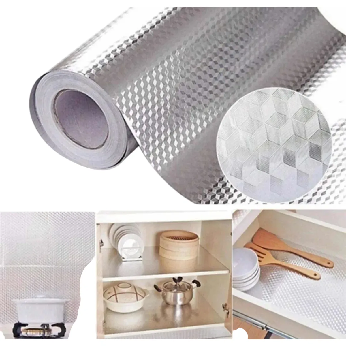 Rollo Papel Autoadhesivo de cocina papel pintado aluminio resistente al calor y humedad para revestir muros, muebles, Cajones de cocina y artefactos