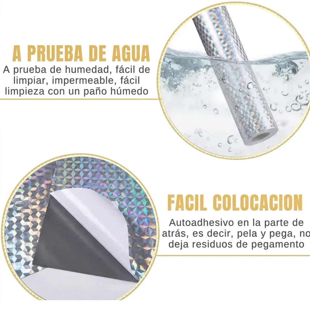 Debido a que es autoadhesivo, el papel se puede instalar fácil y rápidamente. Además, tiene un diseño tridimensional plateado, que proporciona elegancia al medio ambiente.