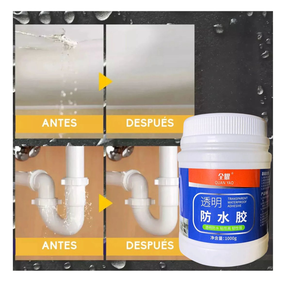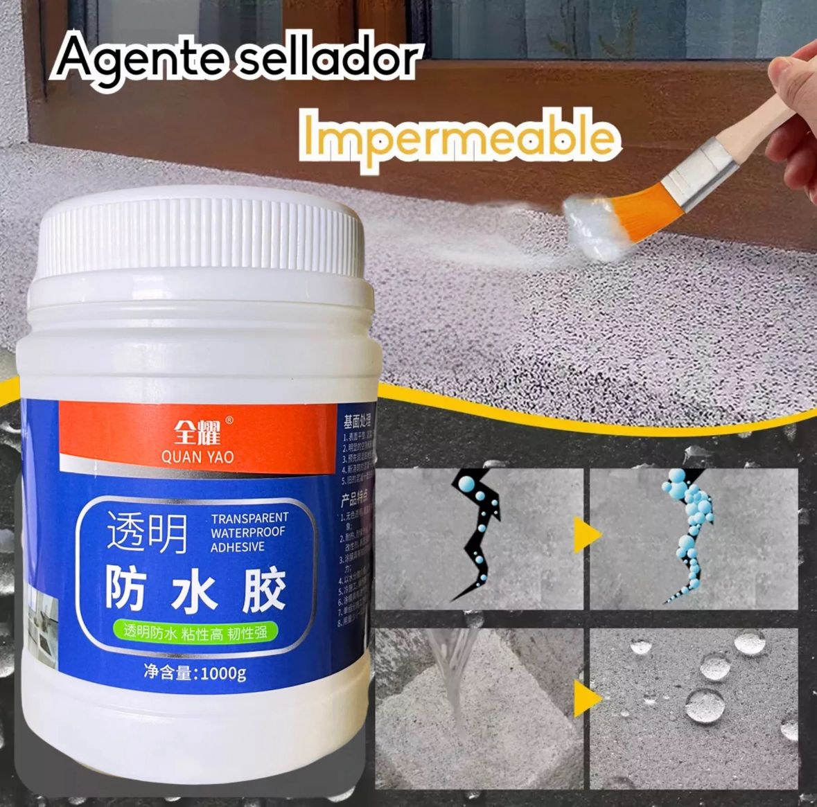 Adhesión óptima: Limpiar las superficies de la base para potenciar el efecto de unión. Aplique masilla impermeable directamente y espere que se seque. Para obtener resultados óptimos, permita que el producto penetre en la base repitiendo el cepillo 2-3 veces.