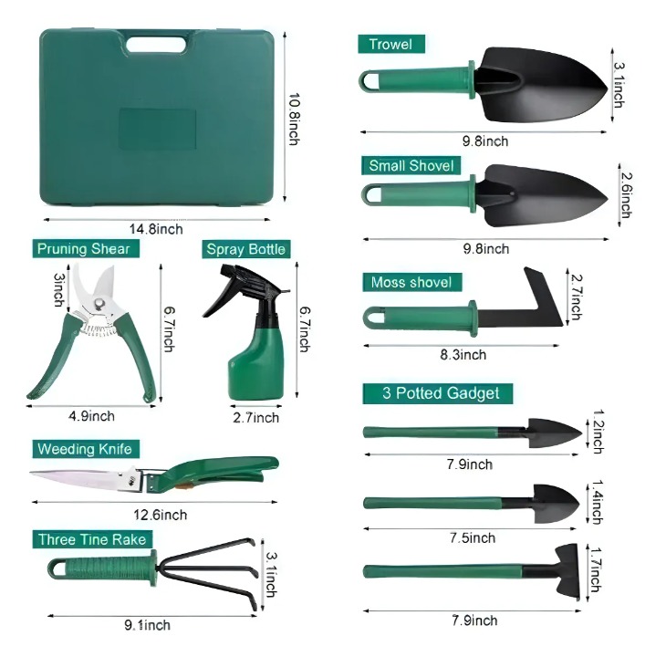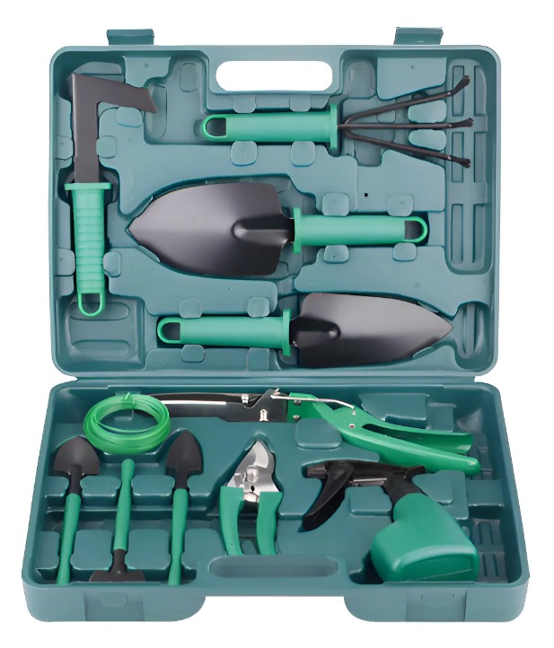 Este Kit de Herramientas de Jardinería de Acero es el compañero perfecto para todos los amantes de la jardinería. Con un diseño ergonómico y materiales de alta calidad, este kit te permitirá realizar todas tus tareas de jardinería con facilidad y comodidad. El kit incluye un rastrillo y una tijera de podar, ambos con mangos de acero de 11 cm de largo. Estas herramientas son robustas y duraderas, diseñadas para resistir el uso intensivo y las condiciones al aire libre. El acero de alta calidad garantiza un rendimiento excepcional y una larga vida útil. El rastrillo tiene un ancho de 26 cm, perfecto para preparar el suelo para la siembra y mantener tus camas de jardín libres de hojas y escombros. La tijera de podar, por otro lado, es ideal para cortar y dar forma a tus plantas, asegurando que siempre se vean lo mejor posible. Con un largo total de 17 cm y una altura de 7 cm, estas herramientas son compactas y fáciles de manejar, lo que las hace perfectas para cualquier tarea de jardinería. Ya sea que seas un jardinero experimentado o un principiante, este Kit de Herramientas de Jardinería de Acero es una adición esencial a tu colección de herramientas de jardín.